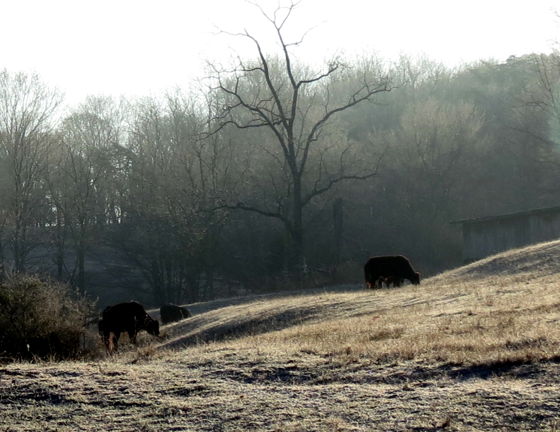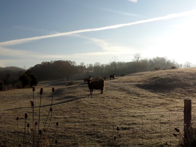 If you’ve seen some of my posts, you will know that I love my ride to work. I travel on 3 short but pretty roads. The first thing that caught my eye this morning was the sun’s reflection on the frost of this cedar tree.