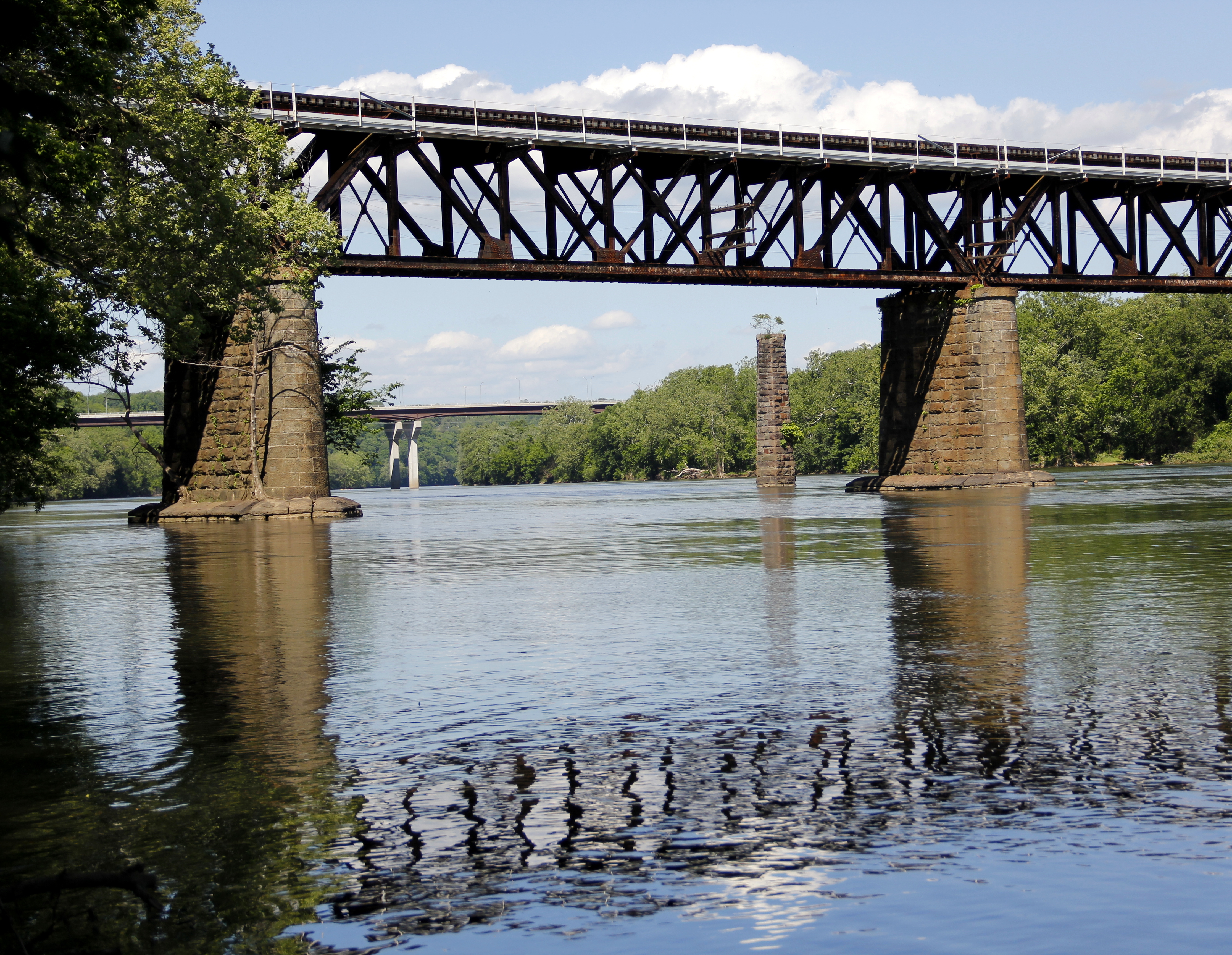 Once the train had passed over the trestle, I reflected (pardon the pun) on the fact that from this view the new Memorial Bridge can be seen in the distance, and the remains of the old, original train trestle as well.