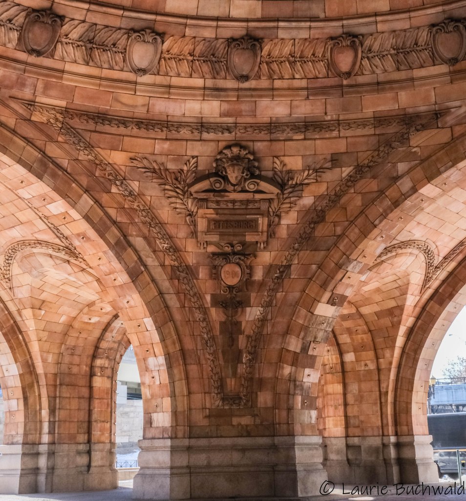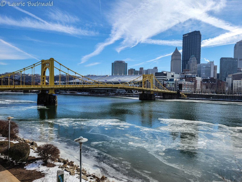We woke to a temperature of 5°F but it had warmed up to a walkable 15°F by the time we set out to explore. As you can see, the Allegheny River was iced over next to the shoreline. The City of Pittsburgh has created the Three Rivers Heritage Trail which is a multi‑use riverfront trail system. The “33‑mile nonlinear trail has segments on both banks of Pittsburgh’s three rivers with access to city neighborhoods, business districts, and local attractions”. The sun was shining brightly and once my fingertips adjusted to the freezing temps, we thoroughly enjoyed our time along the river.