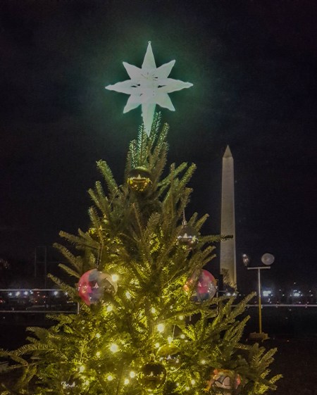 Later that night, we went to the National Mall to see the National Christmas Tree and the 57 trees that surround it, one representing each US State and Territory. With the wind whipping about, it felt colder than 17 degrees and these next images were taken with my cell phone, held by my shaking, freezing cold hands.