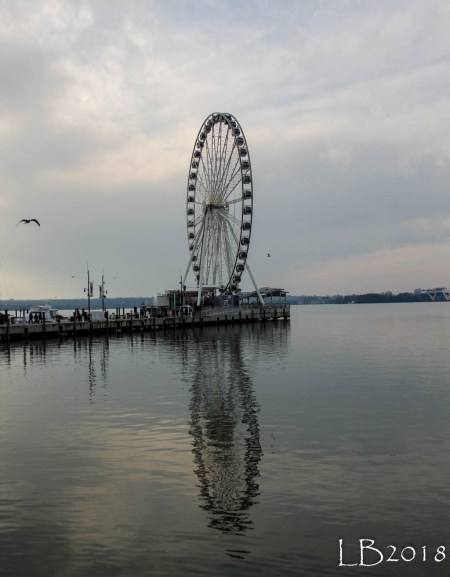 Despite the subfreezing temperatures, we spent several hours of the weekend out of doors. We visited National Harbor, a multi-use waterfront development on the Potomac River in Maryland. With temperatures hovering around 20 degrees during the day, we did not take the opportunity to ride the Capital Wheel, but it made for a great photo subject.