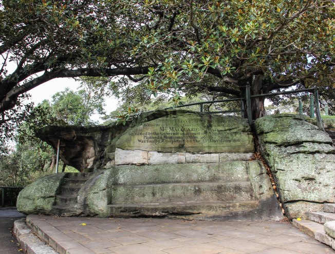 I walked through the Royal Botanic Gardens and along the harbour pathway towards Mrs. Macquarie’s Point. Lady Macquarie’s Chair is an exposed standstone rock cut into the shape of a bench which was hand carved by convicts in 1810 for Governor Macquarie’s wife Elizabeth. Folklore has it that she used to sit on the rock and watch for ships from Great Britain sailing into the harbour.