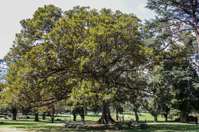 Ultimately, I chose a 5 mile walking tour. I’d miss the interior details of the Opera House and the thrill of the Bridge Climb, but I’d experience the big picture and get an overall taste of this vibrant city. After leaving my overnight luggage at my hotel, I walked by the Queen Victoria Building, completed in 1898, and through Hyde Park, Sydney’s Central Park. Aren’t those trees stunning?